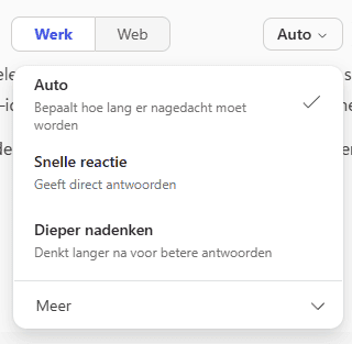 Vanaf oktober 2025 maakt copilot al standaard gebruik van het GPT-5 model. Je kan nu ook zelf bepalen hoe “diep” Copilot nadenkt bij het beantwoorden van vragen.